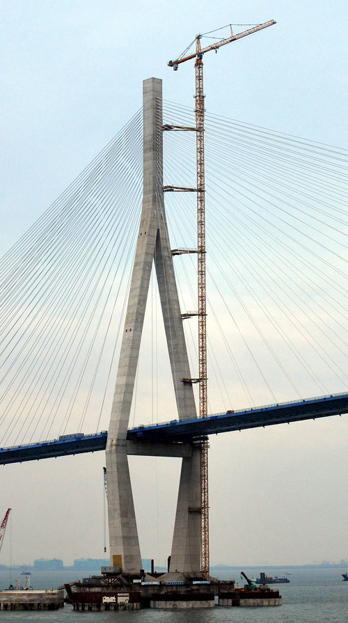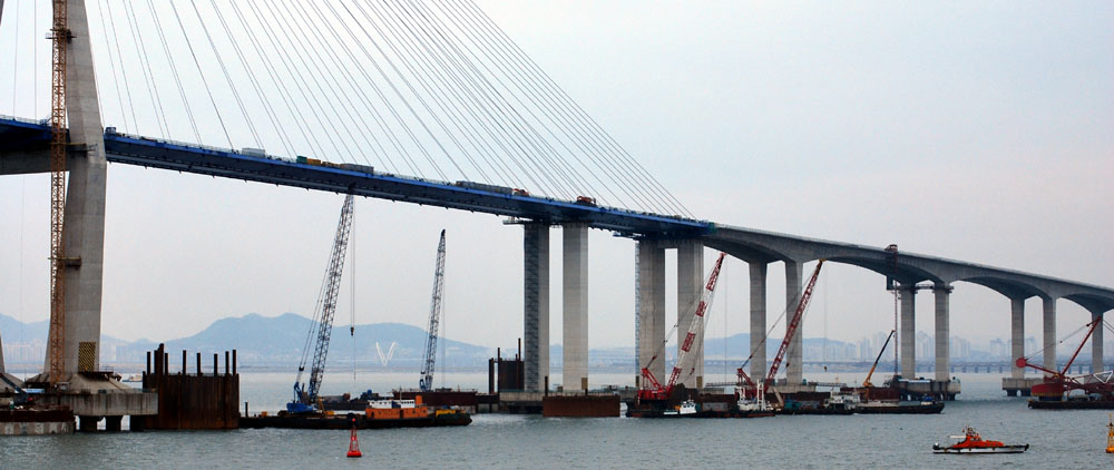“橙老虎”号,一艘巴拿马的货船。请问:这是装运什么东西的货船? 我在这方面绝对是“文盲” ![]() 正在建设中的一座跨海大桥。 ![]() |