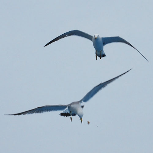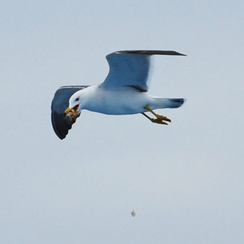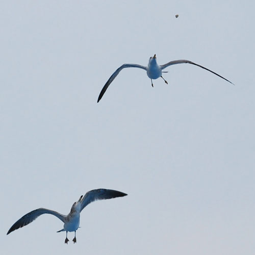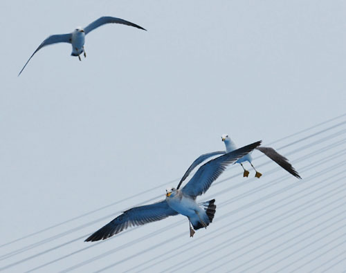 ![]() 一些游客向天空抛出一些碎面包,它们就你争我抢起来,有几只海鸥很强壮,每次抛出去的面包都被他们抢到,准确的入口。吃了之后总要俯冲下去炫耀一下再回来,有几只海鸥的胆子很大,有些游客还没有来的及抛出去拿在手里的面包屑儿就被他们抢着吃了,游客先是被吓得大叫然后又回过神儿来大笑不止。 ![]() ![]() 大鹏展翅,很是壮观。突然一只 Korean Air HL7404 的“大鸟”也闯进了我的镜头。比比看谁飞的漂亮! ![]() ![]() |