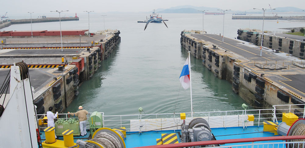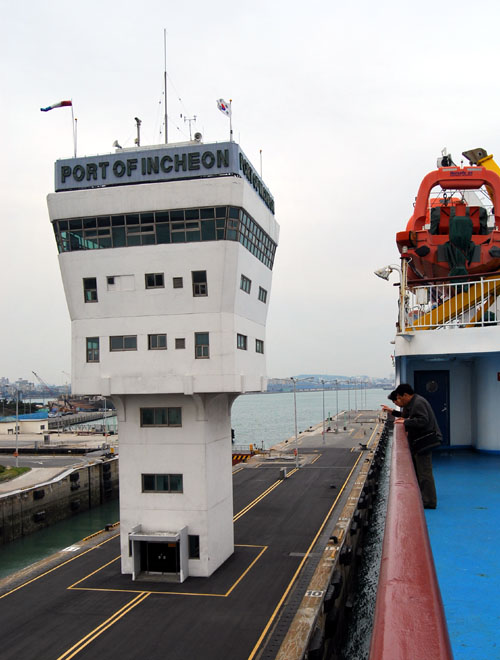 ![]() “不许抽烟”,这一定是条油轮! ![]() ![]() ![]() 忽然,船体震动减少了很多。说明主推动的发动机关闭了。 这东西也靠上来了,心想:“终于快到下船点了! ![]() 船在转向。要把我们推进这个港湾里去? 我还瞎琢磨着! ![]() 船终于停下了,固定的锚绳也放下了。就是感觉船离岸边有点远。也没有看到下船用的梯子车。 赶紧问船上的工作人员,告诉我说:“要下船还早了,码头还在前面。” 丈二和尚,摸不着头脑了! ![]() ![]() ![]() ![]() 大约一个小时,船又继续前行了。问了后才知道:仁川港分为内港和外港。船刚才通过是沟通内外港的船闸通道! 唉,咱们老土了吧! 下面这张照片,能够清楚的看到内港和外港的水位差。 ![]() 内港中的繁忙景象。 ![]() ![]() ![]() |