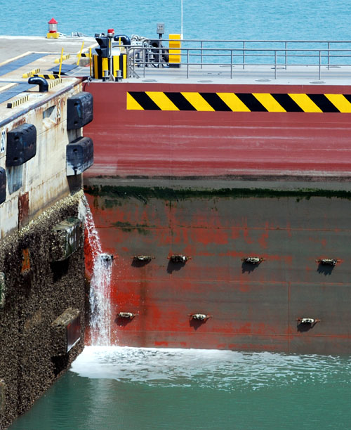通过下面的照片可以看到,整个通过船闸的过程。![]() 驶入船闸 ![]() ![]() 闸门。 ![]() ![]() 闸门关闭中....... ![]() ![]() |