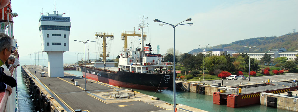 1:00pm 启航。![]() 仁川港是韩国第二大港,是韩国西海岸的最大港口,也是韩国首都首尔的外港,相距不到40公里,为韩国政府经营,港口附近设有出口加工区。仁川港市是韩国最大的经济中心,又是韩国北部进出口贸易中心。 仁川港区主要码头总长 6024米,泊位 33个,在其对外贸易货物吞吐总量中,亚洲占三分之二,或者说中国占 70%,没有中国经济的高速发展,就没有今天仁川港的繁荣发达。由于物流仓储等基础设施功能齐备,仁川港不仅是木材、粮食的重要装卸港口,也是英国伦敦金属交易所的东北亚地区中心,该中心贸易交易的金属种类有铜、铝、镍和钢材等,每年交易上百万吨。 ![]() ![]() ![]() ![]() ![]() 我们乘坐的船,驶离了登船停靠的码头, 能够找到刚刚停靠的位置吗? 把镜头推上去!
