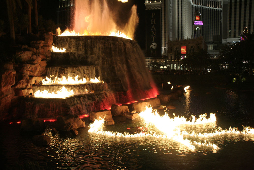 金殿赌场酒店(Mirage) - 火山爆发 金殿酒店的门口以流泉飞瀑的布置闻名于世,淙淙流水中,却可看到火山爆发的奇景,每隔15分钟引爆一次,据说该火山爆发的制作费,每分钟高达2000美元,场面浩大。这里已经是拉斯维加斯观光客必游的景点之一。 ![]() ![]() ![]() ![]() |