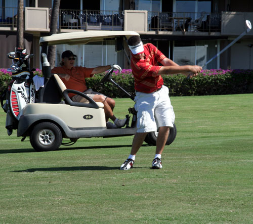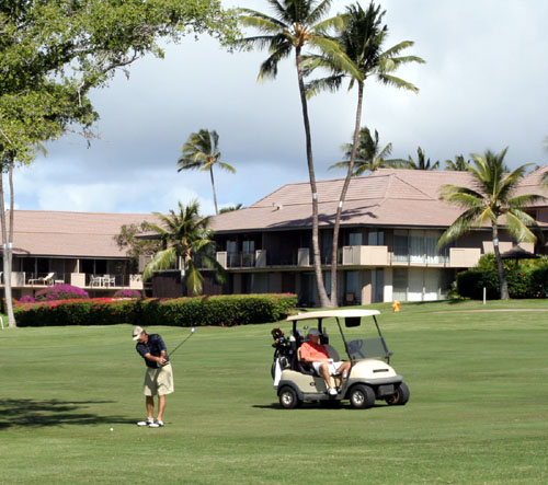 驾车到达 Ka'anapali Pkwy 上可以看到: ![]() 转了几圈也,找不到公共的停车场,我们只好把车停在比较远的地方,步行走进了这个高尔夫球场。尽头也是个 Beach ,但不是我们要找的。 ![]() 在我都已经丧失信心的时候 ![]() |
