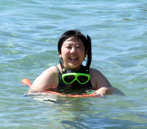 | 这是一个 Public Beach,特点是:浮浅在海面就可以看到四处游荡的 鱼和龟。其入口地点很隐蔽。老猫找到这里,功不可没。 |
