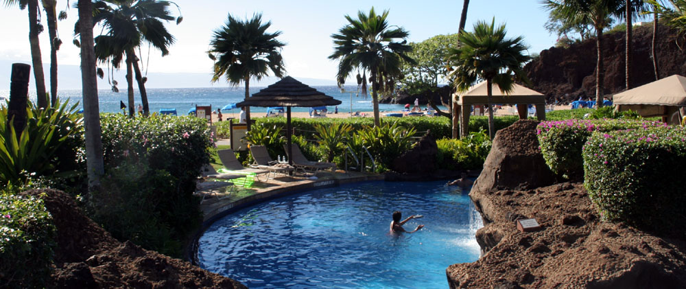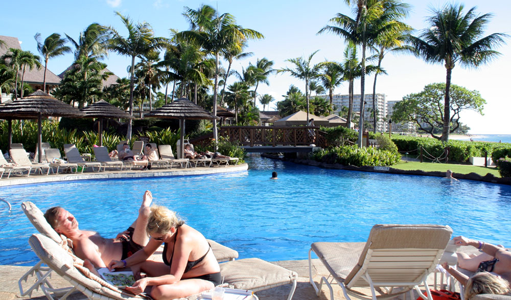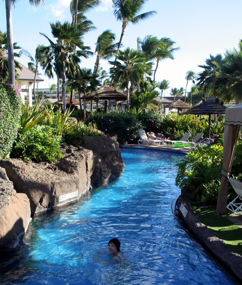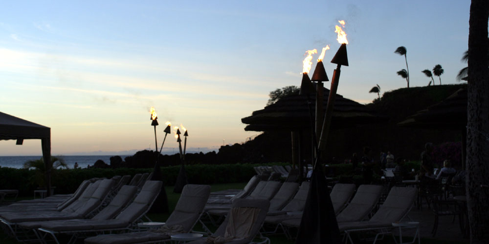 长腿叔叔在这里等夕阳景。 五星级游泳池,弯弯曲曲,像是条小河。岸边摆满了躺椅,渡假的人儿们好不自在逍遥。 5点30分,日落西山喽,吼吼,这“揍是”冬天地不好呀,天黑的太早,人们纷纷离开了。 ![]() 天色渐渐的黑了,Resort 的四周点起火把。人们等待着夏威夷风情舞蹈表演的开始。 ![]() |