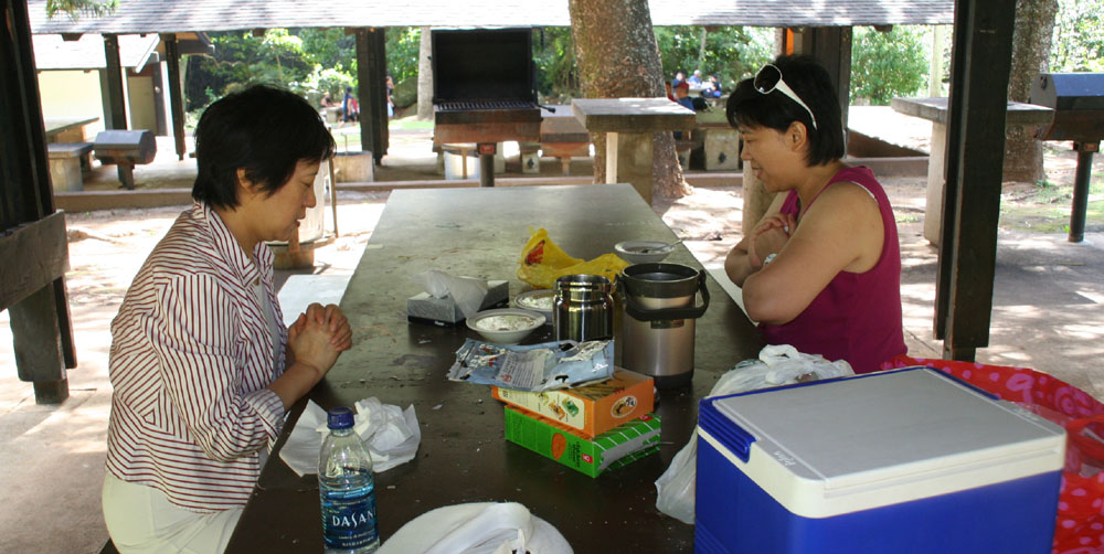 Kepaniwai 遗迹花园内则有日本、中国、菲律宾、葡萄牙的建筑遗迹。在1790年伊奥山谷国王卡美哈美哈一世为消减茂宜军队,曾在此发生血腥战役,如今昔日古战场却成为一个宁静的公园。 ![]() ![]() 这里是个可以 Picnic 的地方。很多当地人来此聚会。 ![]() 我们的午餐就是在这里解决的。 ![]() 巧遇来此游园的当地的可爱的小学生。 ![]() 公园的中间有棵大榕树。 ![]() |