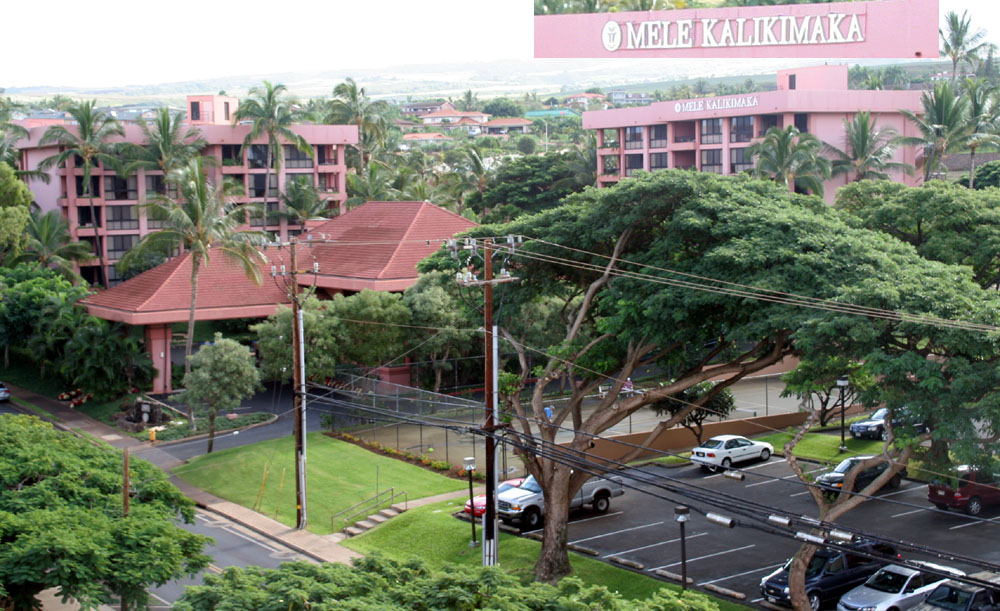 ![]() Resort 前面是 Lower Honoapiilani Road 。对面是个社区中心,粉红色 Building 上,写着的当地语言的意思是: Merry Christmas 。