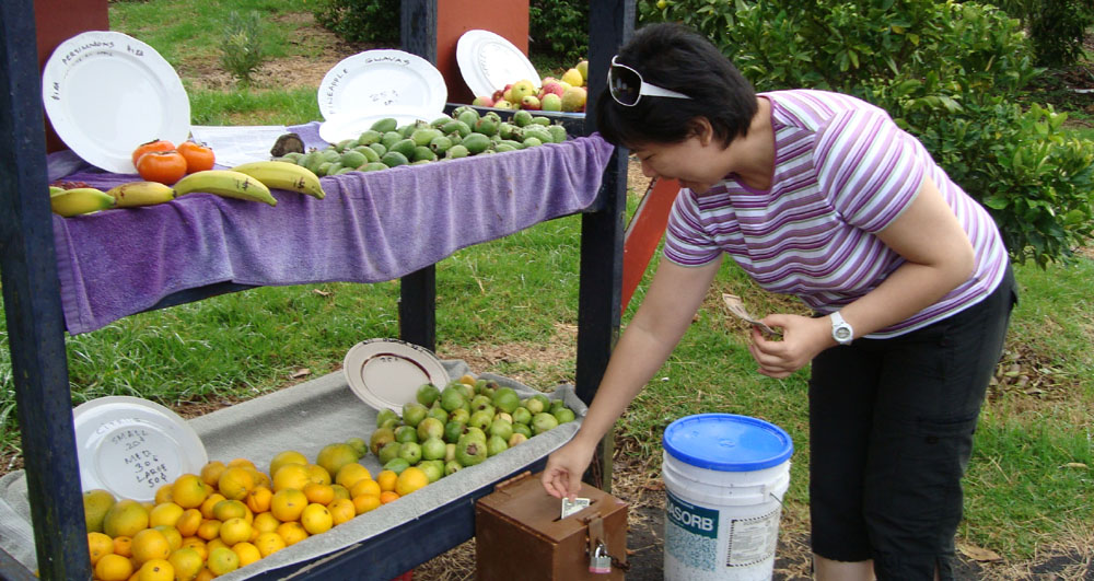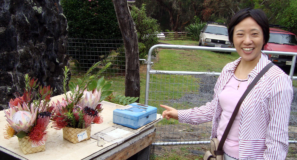 ![]() 这是路边的又一个风景。鲜花、水果摊都是自助的,没有经营者。付费全凭“自觉”了。 ![]() |