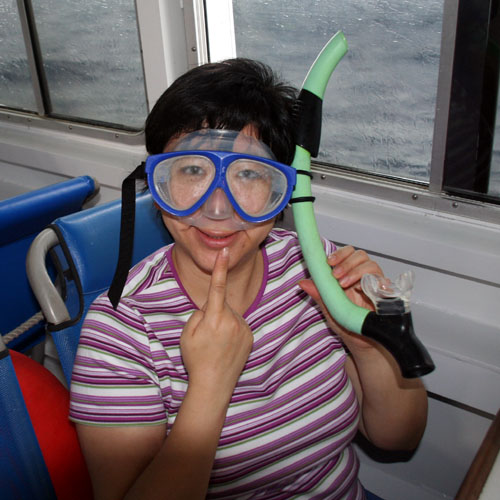 ![]() 我们参加了:一个游艇安排的浮潜活动。游艇通常含早、午餐加提供浮潜器材等。 ![]() 全副武装。 ![]() ![]() |