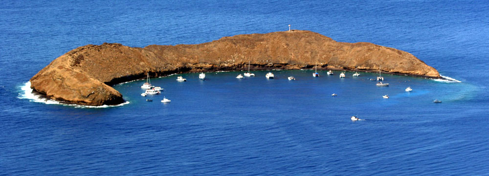 | 莫洛基尼(Molokini) 距离茂宜岛约3英里的莫洛基尼岛,为千年的火山口,浮出海面的陆地似半月弯,由于水中能见度有10至50英尺,有时甚至达150英尺,所以是最佳的浮潜地点,有人认为更可列入世界前十名。 |