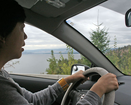 今天我們要去 Kelowna 的東南部。路過來到一個社區公園,地點:Sarson's Beach Park (N49.82598° W119.49872°)。這是我們此次行程第一次在 Okangan Lake 的邊上。 |