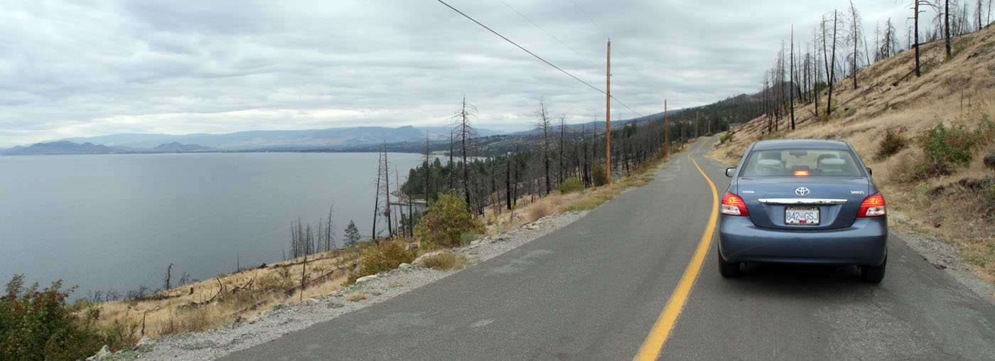 第一站本想看看 Okangan Mountain Provincial Park 有什麼好玩的。 沿著 Lakeshore Road 走到這裡,是路的盡頭了。 |