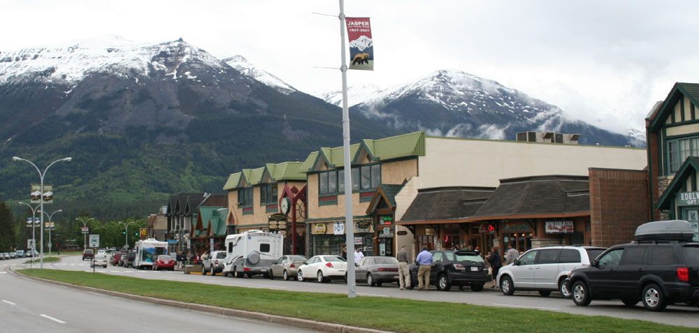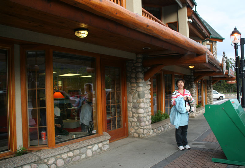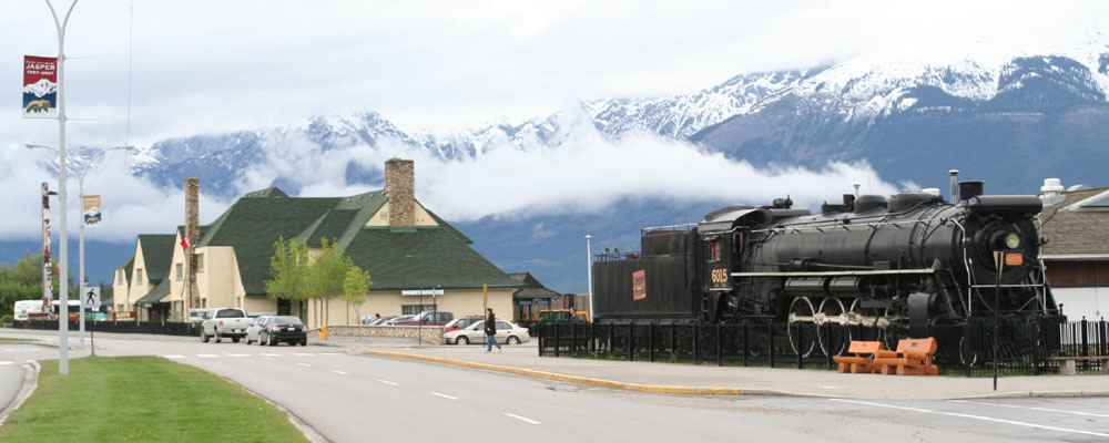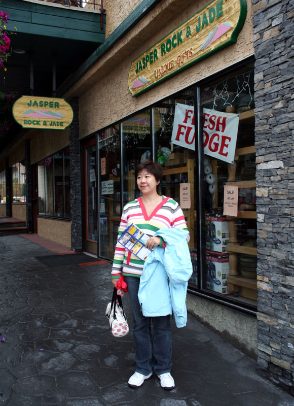 Vistor Center。 继续前行。公路与铁路 平行。一面是山,一面是湖。漂亮! 晚上6點到達 Jasper 小鎮,行程总计约为:880 KM。 找了個55塊一宿的家庭旅館,安顿后,又回到了小镇的中心。 |