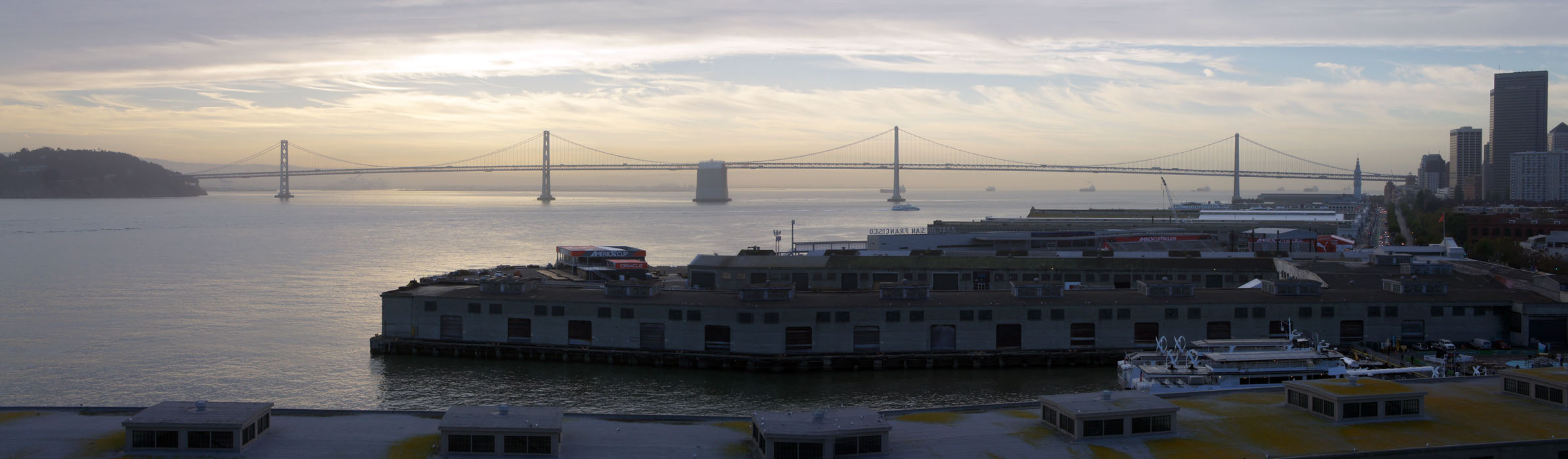 远眺 San Francisco Bay 和 #80公路上的 San Francisco - Oakland Bay Bridge。 Click Here 可以看到大图 |