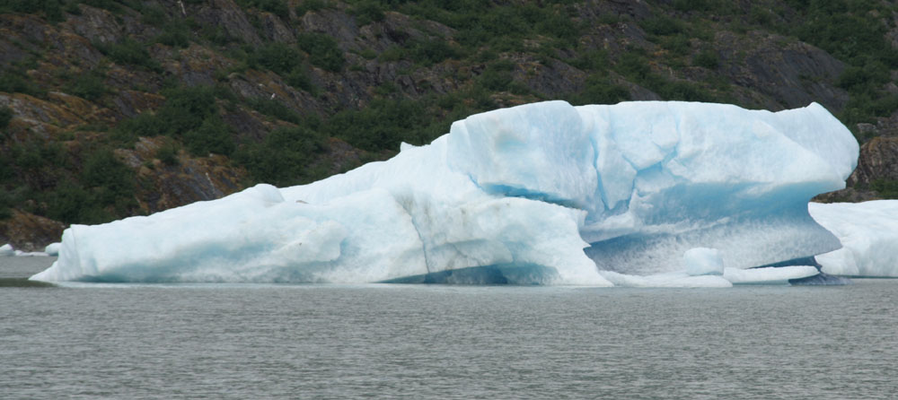 冰川近景。 据介绍:此处的冰,从源头运动到此大约要用100年的时间。 各式各样的浮冰,像什么? |