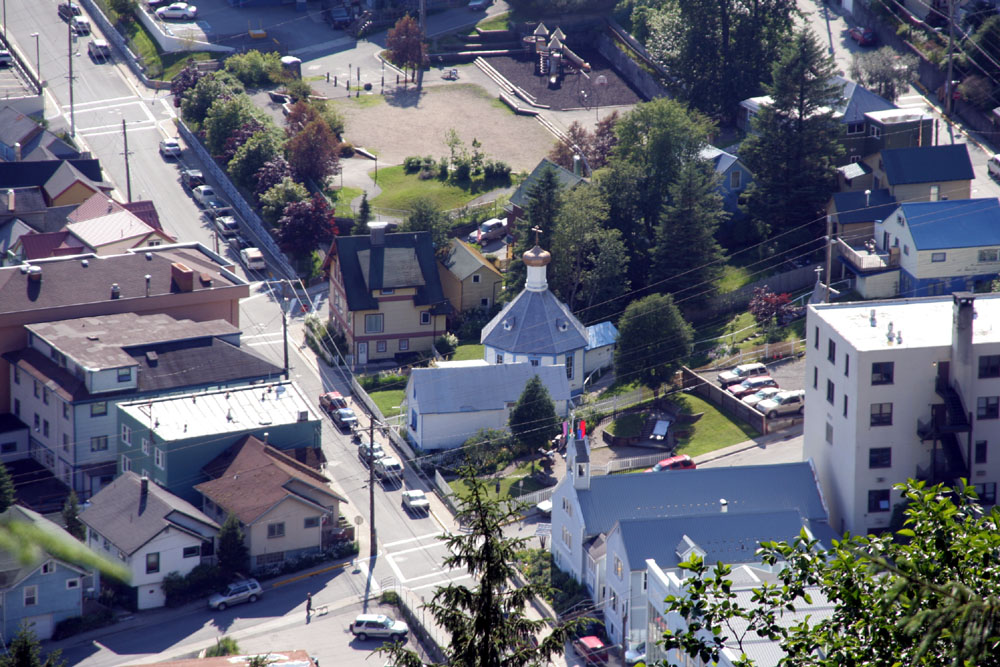 俄国经营阿拉斯加逾百年,在这里到处留下了她的影响遗迹。这是当地历史最久的一座东正教教堂。 街道坡度极大,走在路上,就有爬山的感觉。 透过这些民居,可以看到他们安逸的生活。 |
