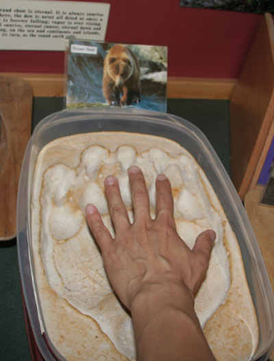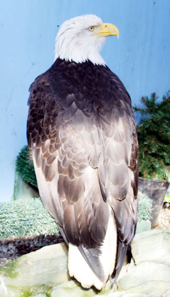 | 不到2个小时,很快就到了观光缆车所在的位置。 在山上,有个 Raptor Center, 养了一只“国鸟”- 白头海雕。 比比谁的掌更大!