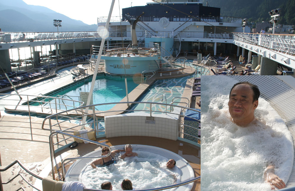 一觉醒来已经是:7月2日 5:30am 。赶快跑到甲板上,远处已经看到了这个城市。 运动了一会,来到了餐厅。早餐已经开始,这里早有人在边吃边看风光了。 我也弄点早餐 |